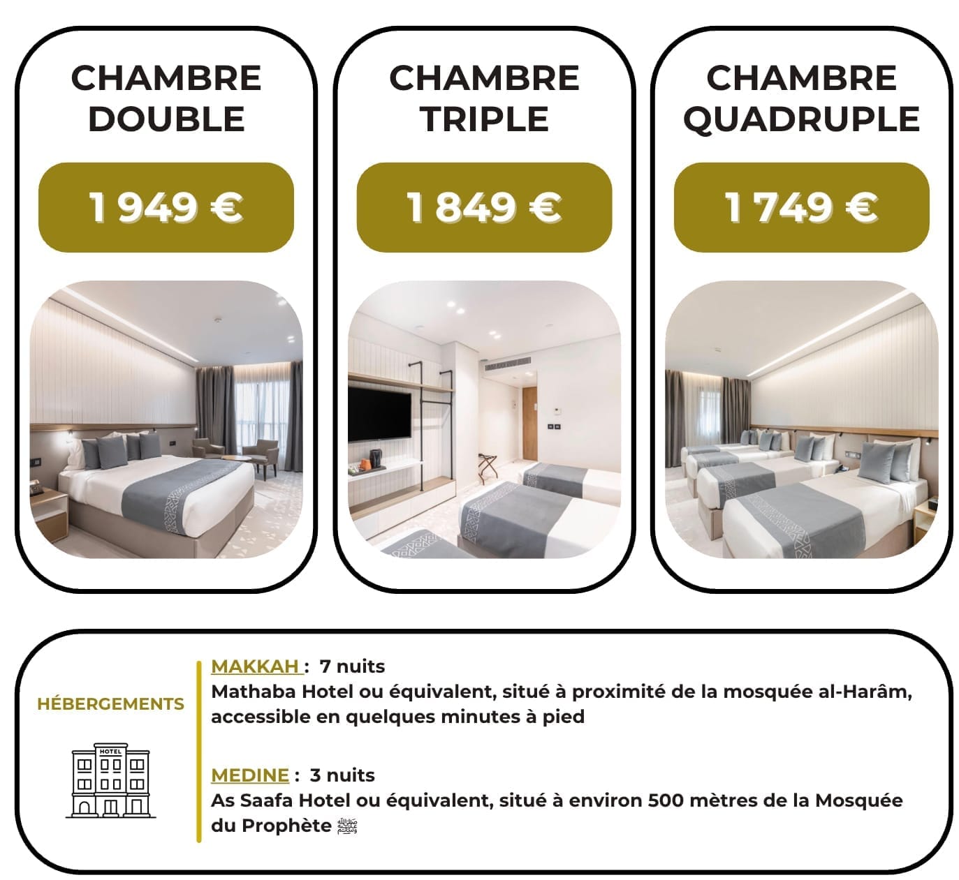 Les hôtels ont été sélectionnés pour leur confort, leur propreté et leur proximité avec les Harams :
