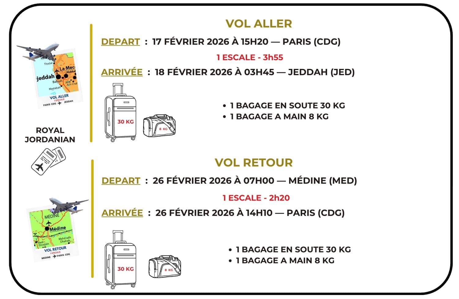 Voici les informations de vol prévues pour la Oumra RAMADAN in shaa Allah :