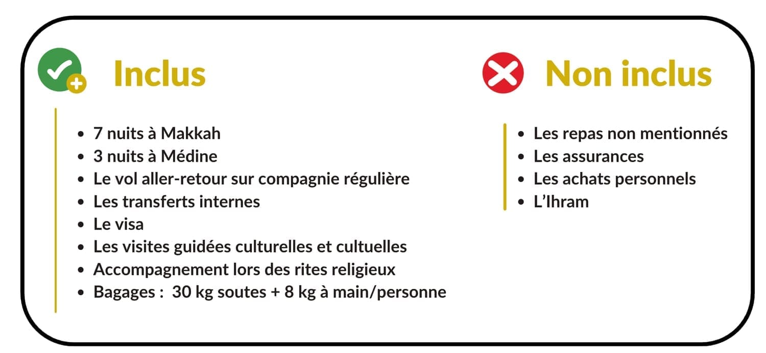 Oui, le visa pour la Oumra est inclus dans le tarif global du voyage.